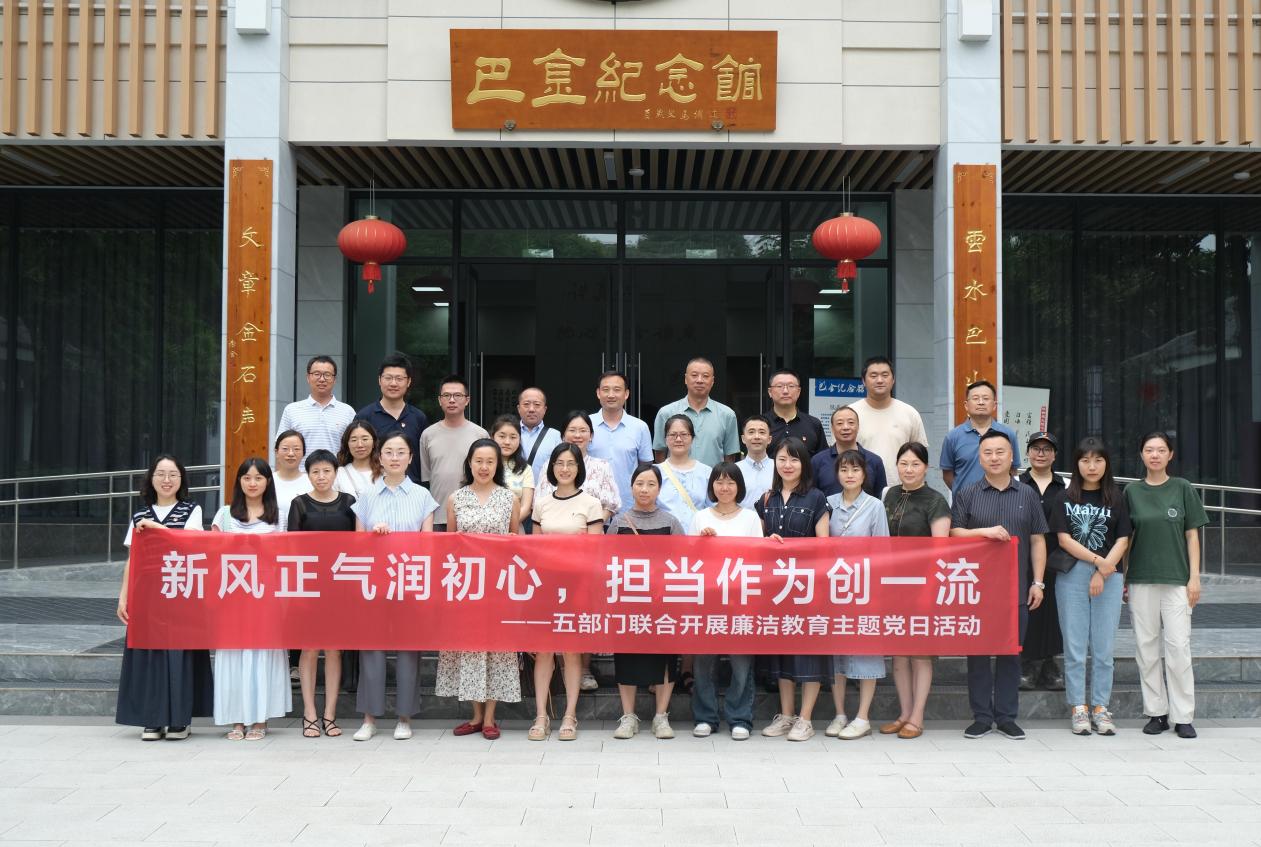 为深入学习贯彻中央八项规定精神,增强教职工廉洁自律意识,2025年6月19日,122cc太阳集成、发展规划处、党委巡视工作办公室、社会科学研究处、审计处五个部门党支部党员代表前往龙泉驿区巴金文学院/巴金纪念馆联合开展了廉洁教育主题党日活动。