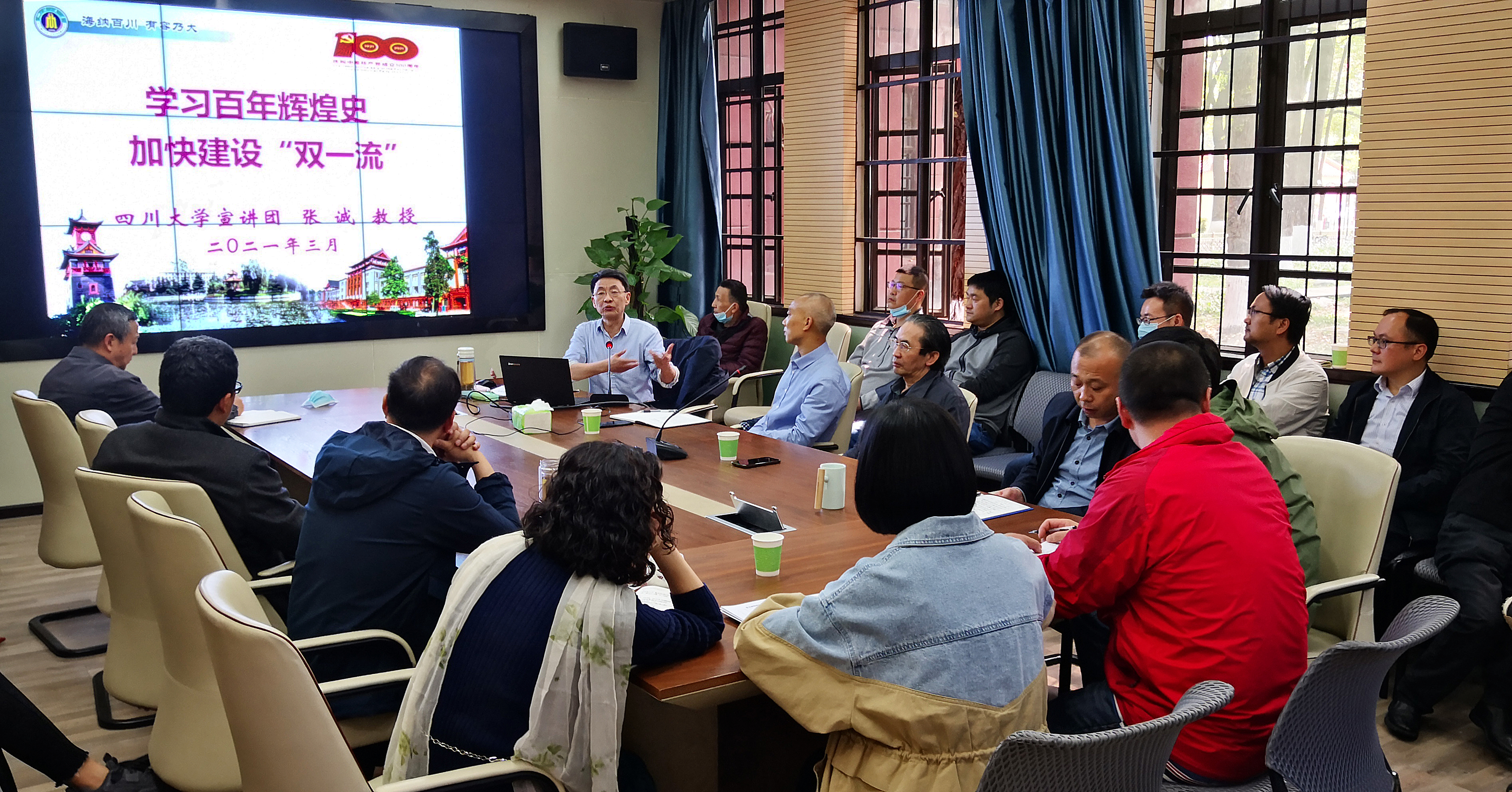 最后,敖天其处长代表与会同志对宣讲团专家张诚教授的精彩宣讲表示衷心感谢,并联系本单位实际,对深入开展党史学习教育进一步提出了明确的要求。他强调,百年来,我们党带领人民创造了伟大历史,铸就了伟大精神,形成了重大理论成果和宝贵经验。我们站在“两个一百年”奋斗目标的历史交汇点上,通过多种形式扎实深入开展党史学习教育,更加深刻认识党的性质宗旨,更加自觉地系统学习党的创新理论最新成果,始终牢记初心使命,胸怀党的千秋伟业,喜迎党的百年华诞,切实增强信心、立足本职,努力为新时代国家和学校的人才培养、科学研究、社会服务以及文化传承创新提供一流服务,为加快推动学校早日进入世界一流行列做出更大贡献!