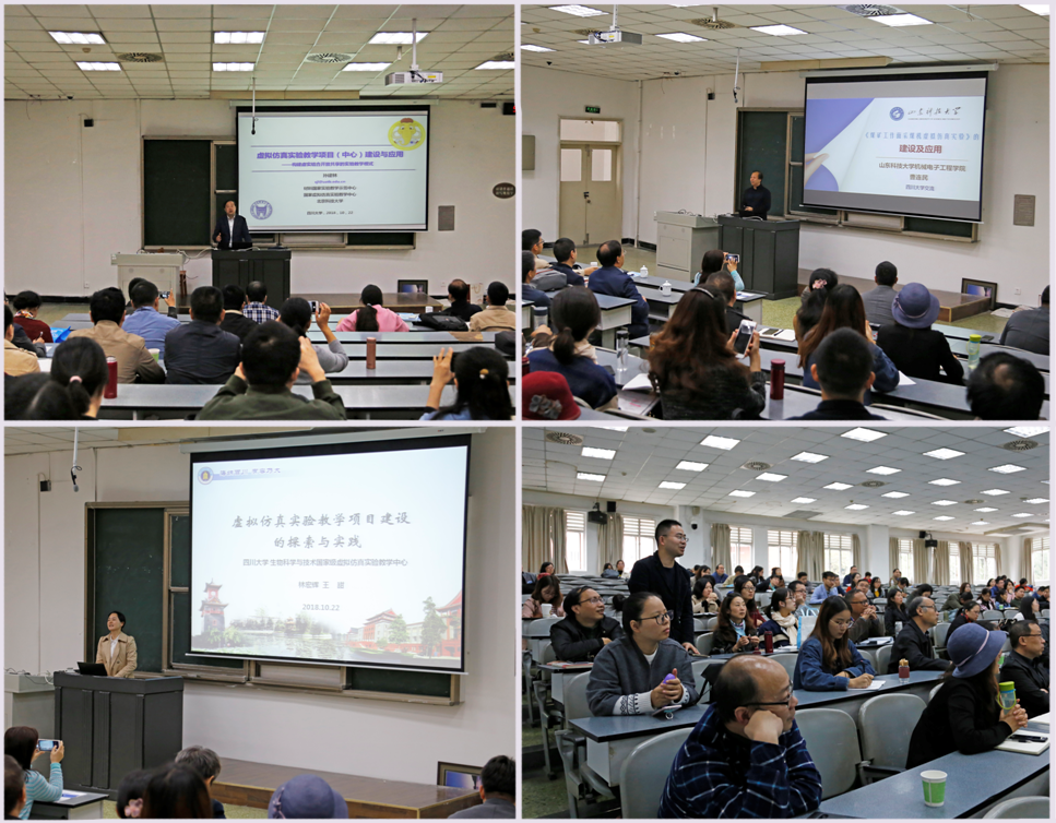 为推进学校优质虚拟仿真实验教学资源及项目建设工作,2018年10月22日,由122cc太阳集成、教务处组织举办的虚拟仿真实验教学项目建设与申报培训会在望江校区基教楼C座C204成功召开。会议邀请了北京科技大学材料学院教授、材料国家级实验教学示范中心及虚拟仿真实验教学中心主任孙建林,山东科技大学机械电子工程学院教授、教育部首批国家虚拟仿真实验教学项目“煤矿工作面采煤机虚拟仿真实验”主持人曹连民,太阳成集团tyc122cc生物科学与技术国家级虚拟仿真实验教学中心副主任王甜作培训专题报告。设备处、教务处、相关学院分管领导、各级实验教学示范中心主任、系(教研室)主任、专业实验室(基础实验中心)主任、实验课程负责老师、实验技术人员等150余人参加了培训会。