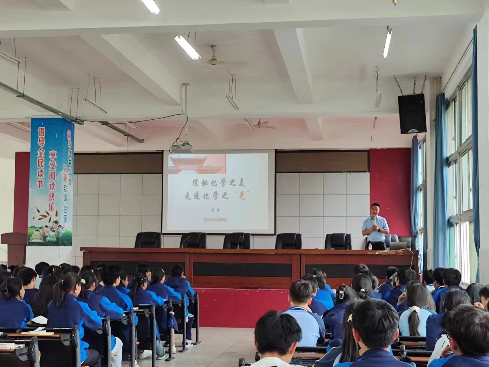 活动伊始,化学学院的李坤教授为甘洛中学的学生们带来了一场生动的专家授课。李教授以“探秘化学之美,走进化学之‘光’”为主题,用通俗易懂的语言和丰富的实验案例,向学生们展示了化学的神奇魅力和广阔应用前景。学生们在李教授的引导下,不仅深入了解了化学知识,更激发了他们对科学探索的浓厚兴趣。