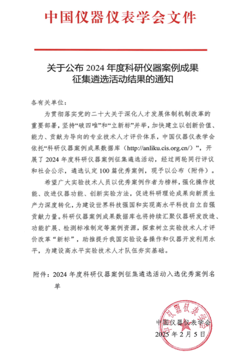 为贯彻落实党的二十大关于深化人才发展体制机制改革的重要部署,加快建立以创新价值、能力、贡献为导向的专业技术人才评价体系,中国仪器仪表学会开展了2024年度科研仪器案例征集遴选活动。近日,中国仪器仪表学会公布遴选出的100篇2024年度科研仪器优秀案例成果。我校分析测试中心等单位提交的《原子光谱/质谱同时测量仪器系统研制》《大仪设备开放共享收费价格体系构建与实践》《大仪设备开放共享的探索与思考-基于太阳成集团tyc122cc分析测试中心》《激光诱导击穿光谱定量分析全血中的锂元素》和《小型化远程激光诱导击穿光谱仪器研发及对合金钢中硅钼铬的分析》5篇科研仪器案例成功入选,入选数位列入选单位前列。