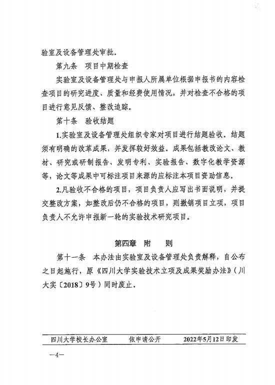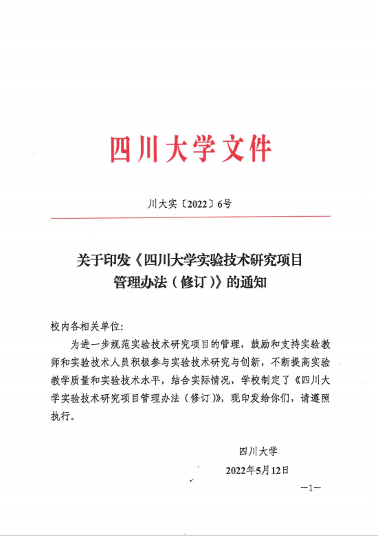 川大实〔2022〕6号《太阳成集团tyc122cc实验技术研究项目管理办法(修订)》