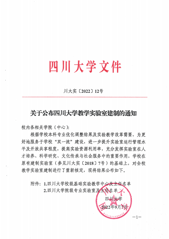 川大实〔2022〕12号《关于公布太阳成集团tyc122cc教学实验室建制的通知》