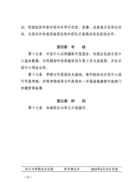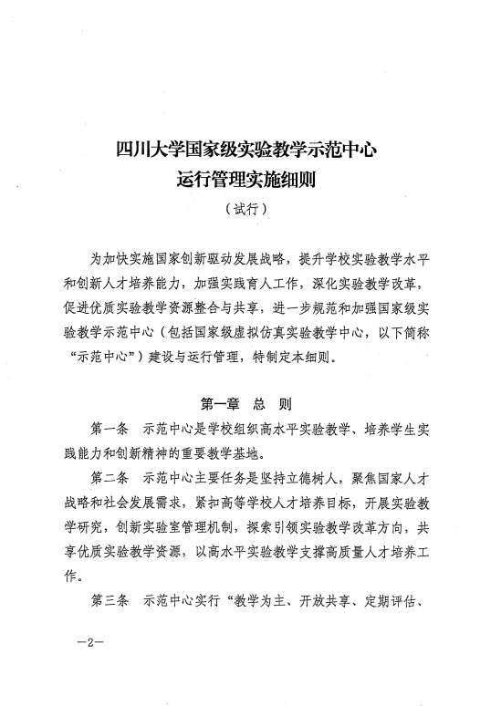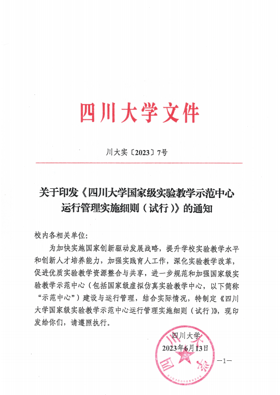 川大实〔2023〕7号《太阳成集团tyc122cc国家级实验教学示范中心运行管理实施细则(试行)》